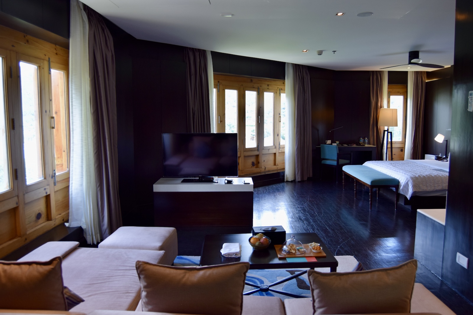 Mittlerweile gibt es eine Auswahl internationaler Hotels in Bhutan. Le Meridien in Paro und in Thimpu sind schon länger in diesem Land ein Player. Preislich sind diese zwei Hotels komplett abgehoben. Le Meridien in Paro will in der Regel irgendwas über 600 Euro. Das ist für ein Le Meridien schon mal eine ordentliche Ansage. Netterweise sind beide Le Meridien Hotels aber Sweet Spots im Marriott Bonvoy Programm. Um 35.000 Punkte konnte ich das Le Meridien in Paro buchen und habe noch ein Nightly Upgrade Award für eine Suite raufgelegt. Ein paar Tage vor Anreise ist dieses Upgrade automatisiert durchgegangen.