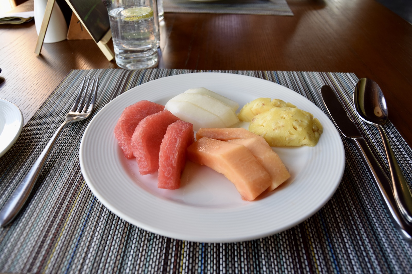 Für Statusgäste gab es auch noch so einen Club Ersatz in der Lobby Bar. Eigentlich hätte ich da irgendwas beim Check-in schon bestellen sollen. Wie soll ich beim Check-in schon die Karte kennen? Trotzdem gab es dann so Snacks für mich. Diese vegetarischen indischen Gerichte waren irgendwie noch in Ordnung. Es war aber nicht so, dass ich da am nächsten Tag zurückkommen würde. Respekt aber dafür, dass sie wenigstens eine fehlende Club Lounge kompensieren möchten.