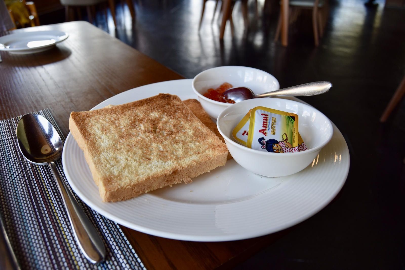 Für die Gäste des Hotels bietet man einen kostenlosen Afternoon Tea an. Den habe ich mir natürlich gegeben. Wieder in einem menschenleeren Lokal mit fehlender Aircondition hat man irgendein billiges Zeug hingestellt.