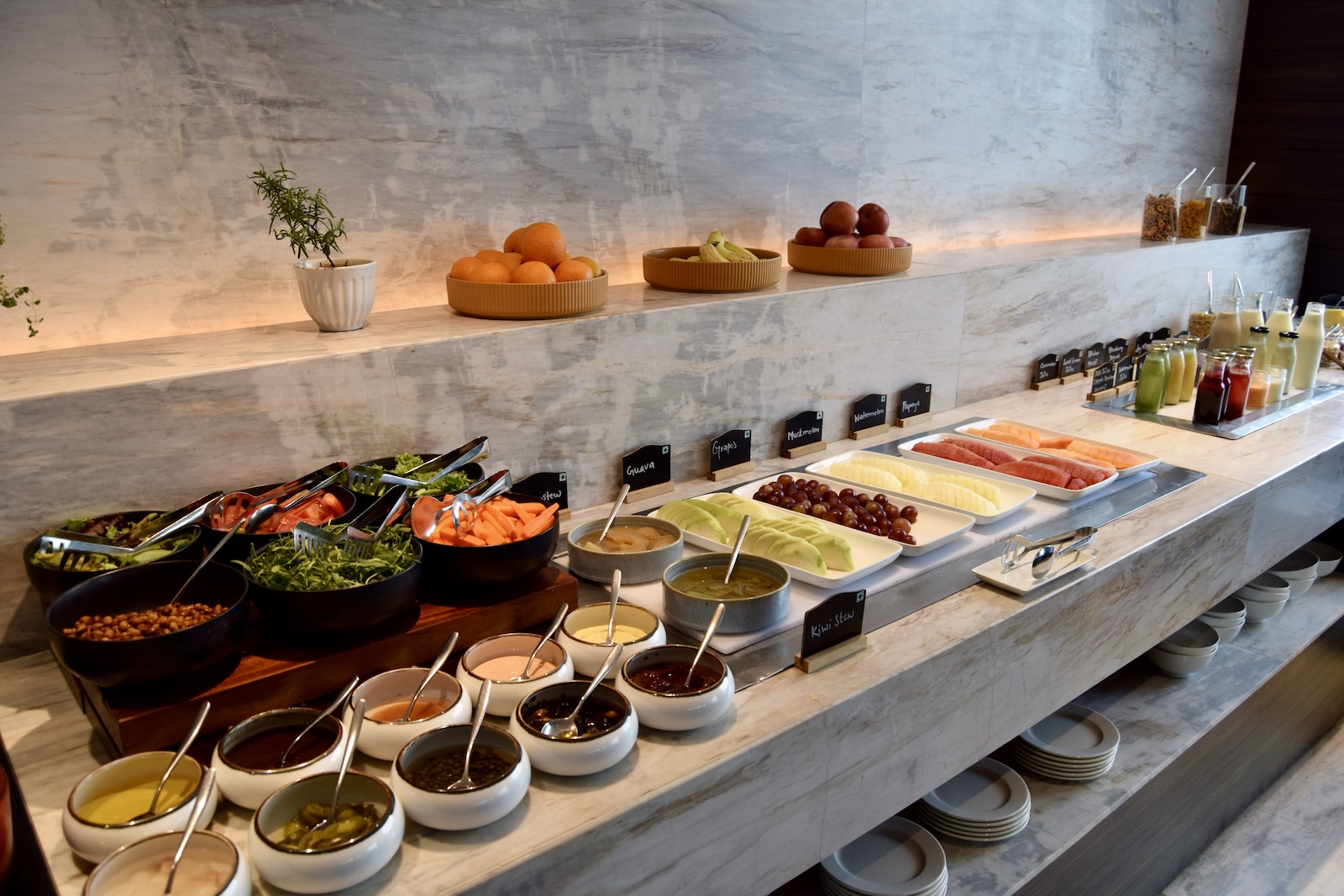Die Lounge selbst hat einen starken Restaurant-Vibe und das Lounge-Gefühl kommt gar nicht so stark rüber. Es ist eher so eine Art Restaurant mit Aussicht, aber eigentlich ist es die Club Lounge. Evening Spread war sehr breit und eigentlich eine Art Buffet in einem Hotelrestaurant. Frühstück hätte es für Statuskunden auch im Hotelrestaurant gegeben, aber ich bin in die ruhigere Club Lounge rauf. Da gab es ein wieder sehr schönes Frühstücksbuffet und auch ein Karte mit Frühstücksgerichten. Die Club Lounge hat eine starke kulinarische Tendenz, was ja eigentlich super ist. Service war sehr umgänglich und höflich. Da muss man nicht rausgehen, sondern kann in dem Hotel mit der Lounge eigentlich sehr ordentlich leben. Es ist natürlich auch ein wenig der Kundschaft geschuldet. Das Hotel ist stark im Bereich Business und diesen Kunden muss man halt eine ordentliche Lounge bieten.