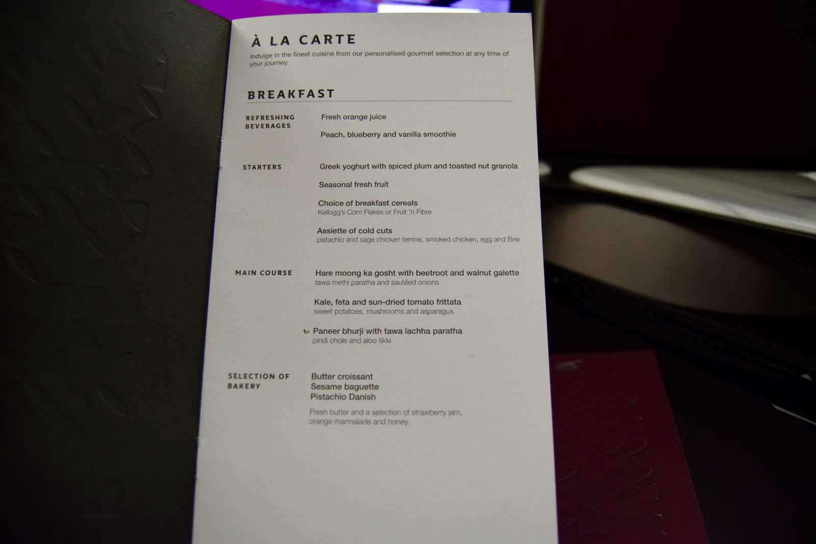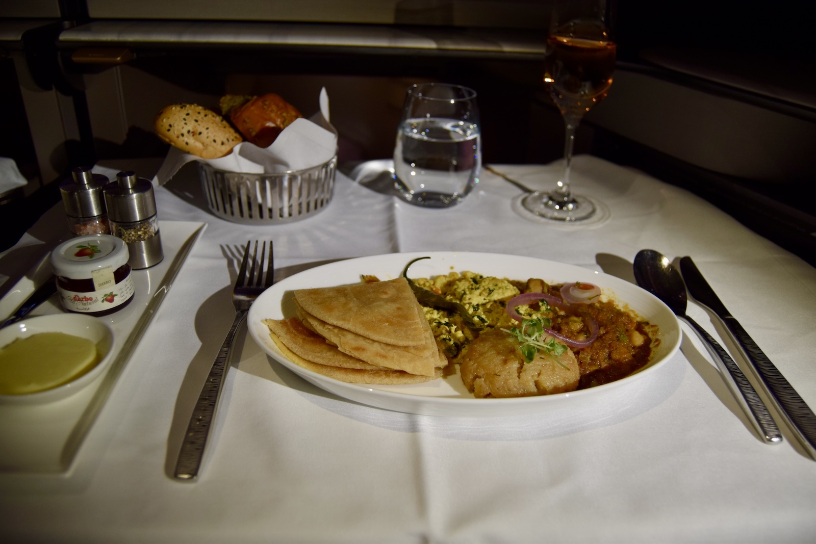 Nach einer Runde Drinks hat man das Frühstücksset serviert. Es wurde voll eingedeckt. Cold Cuts und das indische Gericht waren schon ganz nice. Für einen Flug mit ein wenig mehr als drei Stunden hat Qatar Airways voll abgeliefert.