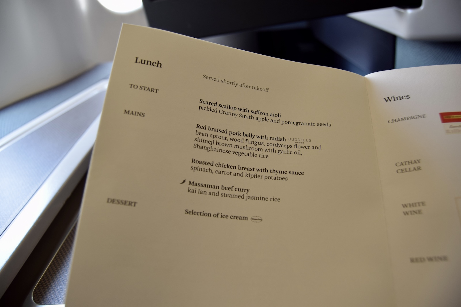 Mit dem Catering der Cathay Pacific auf ihren regionalen Strecken habe ich in letzter Zeit so meine Probleme (Review und Review). Eigentlich ist es immer nur so ein sehr fett-durchzogenes Schmorgericht mit unterschiedlichen Namen. Sie nennen es jetzt nicht mehr Braised-XYZ, Braised-ZYX und Braised-XZY. Man ist in der Namensgebung kreativer geworden, aber die Sache bleibt leider gleich. Billiges Fleisch das man schlecht geschnitten in Töpfe geworfen hat. Die Muscheln als Vorspeise waren noch ganz nett, aber vor diesen Schmorgerichten graut es mir.