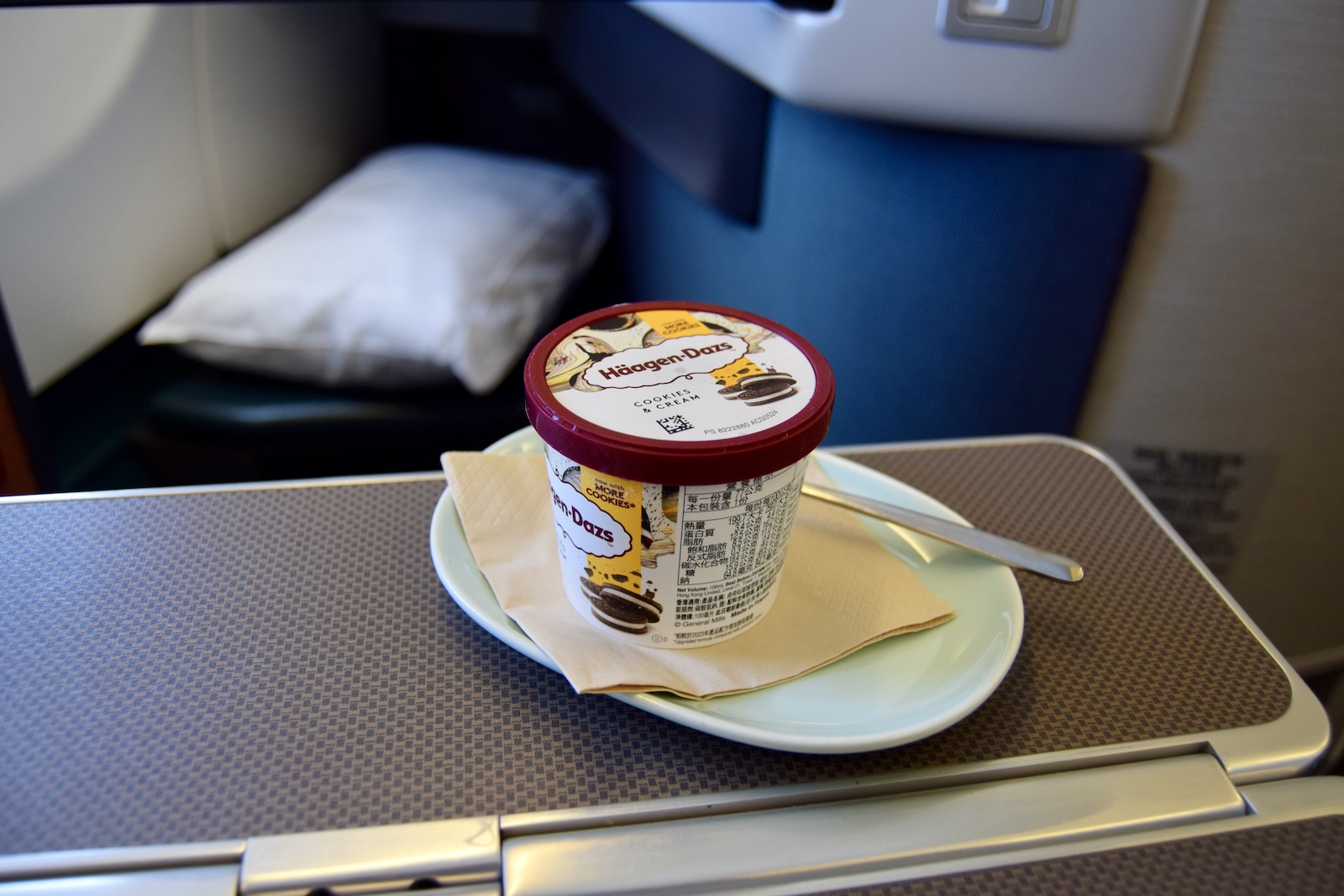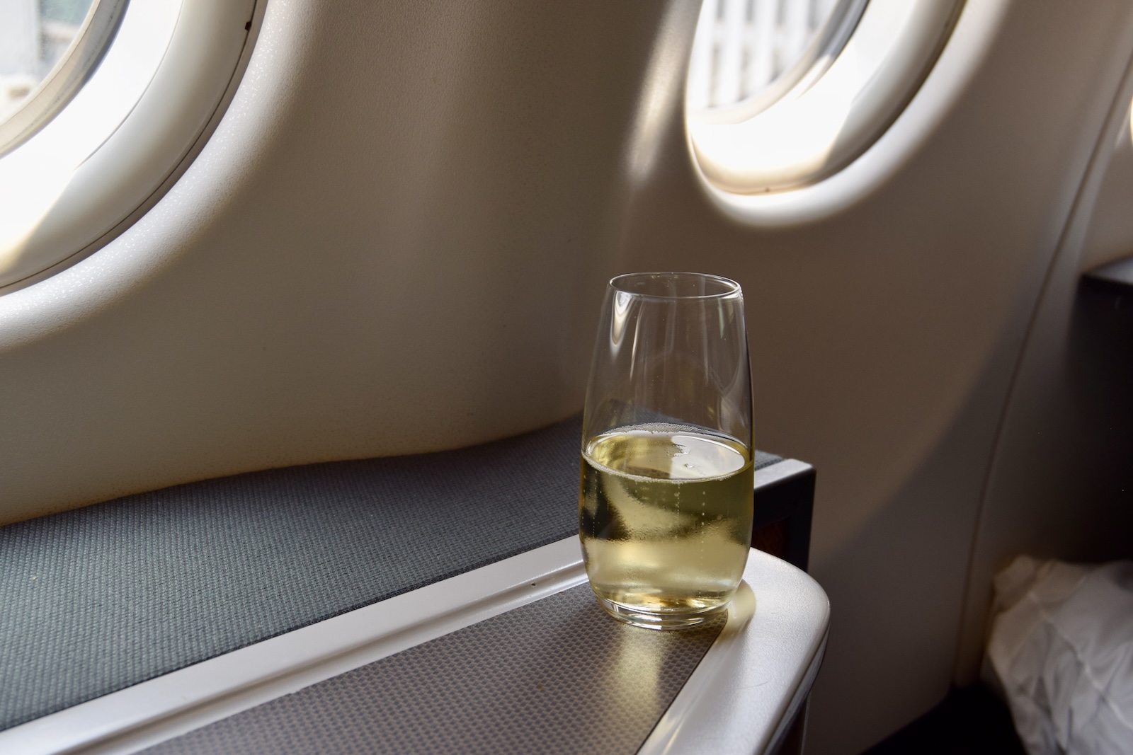 Diese Flüge sind echt nicht günstig, aber Cost Cutting ist allgegenwärtig. Seltsame Hauptspeisen, keine Slipper, irgendein No-name-Wasser, keine Untersetzer für Getränke, keine Nüsse und nur Eis als Nachspeise lassen ein wenig den luxuriösen Touch vermissen.