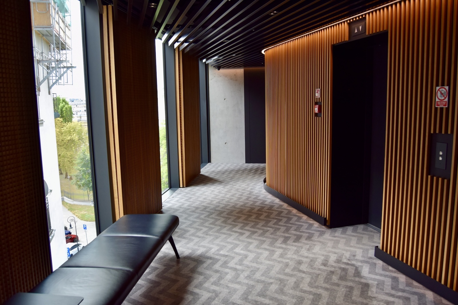 So bin ich in eine Suite im Altbau gezogen. Da lief die Klimaanlage und man konnte die Fenster öffnen. Nicht so ganz nice war ein Baustellengerüst und Baulärm vor der Nase im Schlafzimmer. Von dieser Suite habe ich keine Fotos gemacht. Ich war ein wenig fertig, weil erst auf Nachdruck sind sie kooperativ geworden und es gab mit diesem Umzug in eine Suite eine Lösung. Im Endeffekt fand ich das alles ungeschickt. In einem hermetisch abgeschlossenen Neubau dem Gast keine Belüftungsmöglichkeiten zu bieten geht nicht. Ich will auch kein Fenster auf eine befahrene Straße kippen müssen. Diese ganzen Diskussionen um ein ordentliches Zimmer zu bekommen waren auch müßig. Das alles auf dem Hintergrund vom Zimmerpreis von 200 Euro, wo man in Warschau schon bei den teureren Hotels angekommen ist.